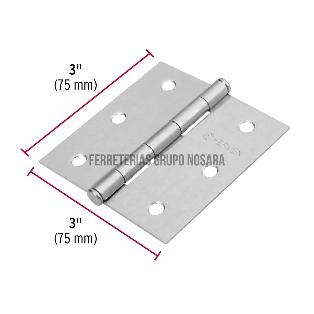3" square hinge, matt chrome steel, flat, Hermex Basic / 23687