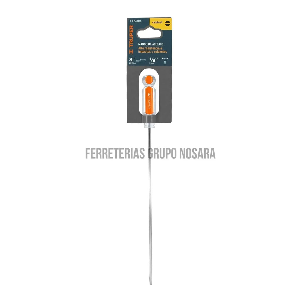 Cabinet screwdriver 1/8" x 8" acetate handle, Truper / 14026
