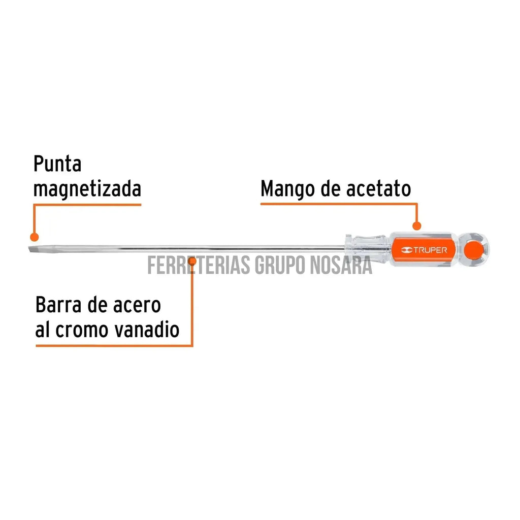 Cabinet screwdriver 3/16" x 8" acetate handle, Truper / 14041