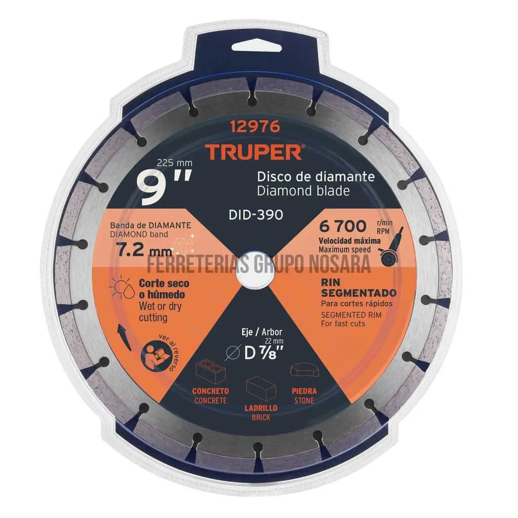 Diamond blade 9" x 2.7 mm segmented rim, Truper / 12976