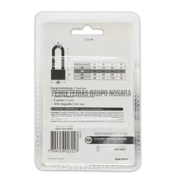YALE CANDADO 113-40 ESPIGA LARGA